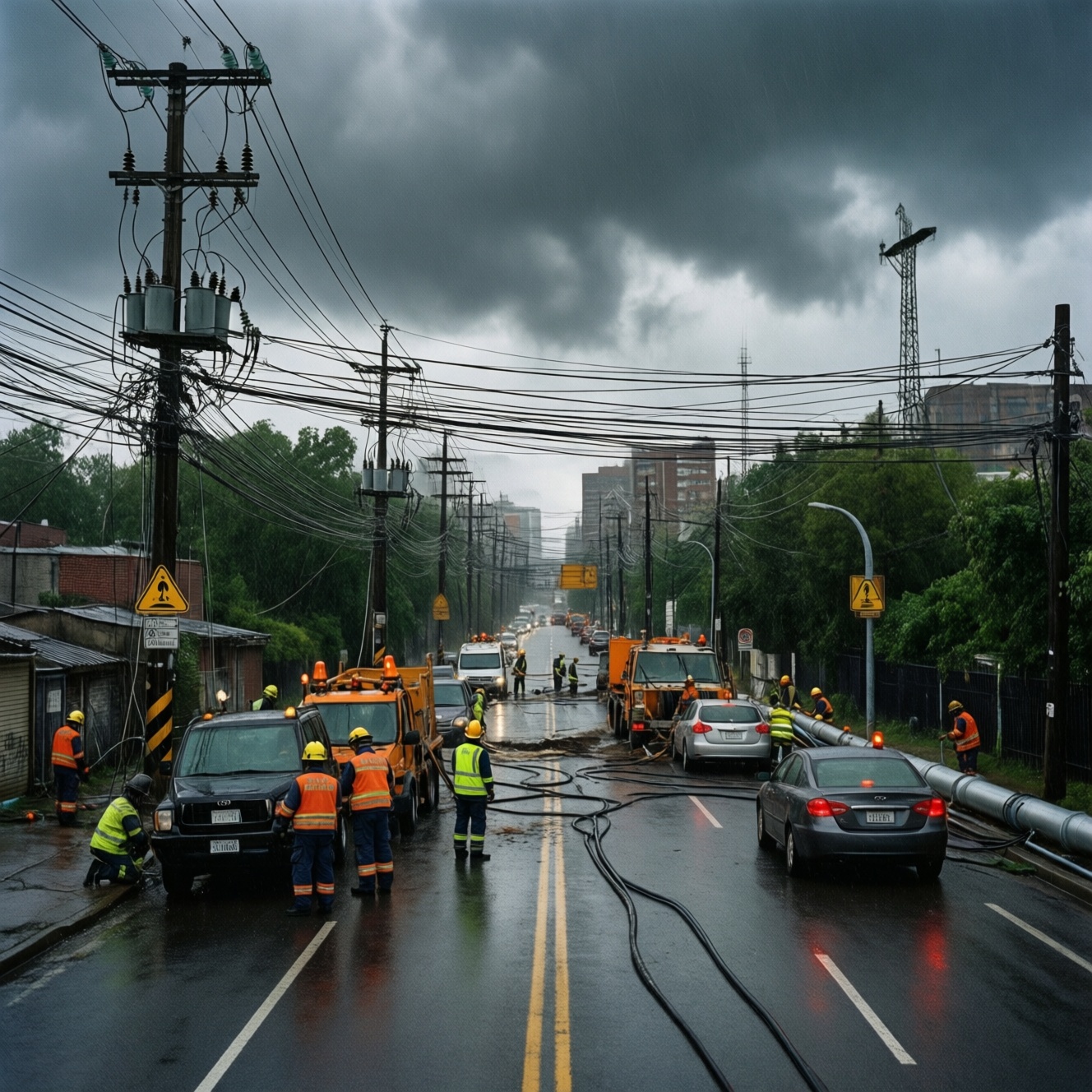 - Ограничить доступ в опасные зоны, выставить ограждения, передать задачи профильным бригадам (электрики/сети/дорожники).